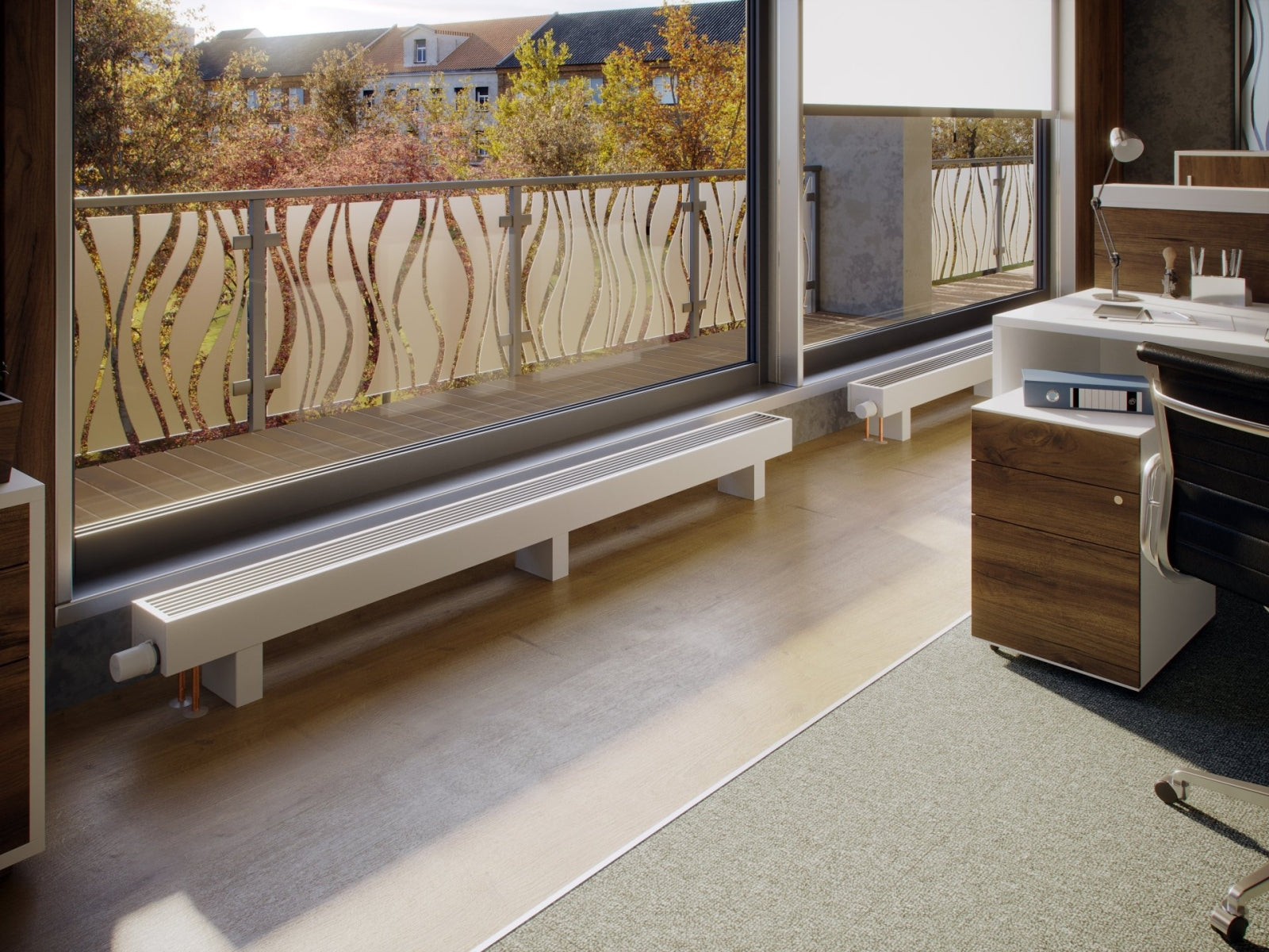 - Ideale Wärmeleistung: Der LKO bietet eine optimale Wärmeleistung zur Abschirmung von Kaltluftzonen, die durch große Fenster entstehen, und sorgt für ein gleichmäßiges, behagliches Raumklima.